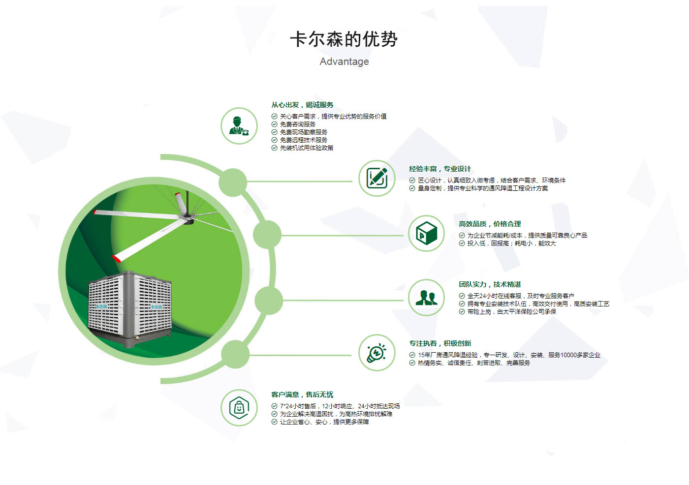 ??晉江市卡爾森機電設(shè)備有限公司是一家集設(shè)計、制作、銷售、安裝工業(yè)通風設(shè)備、中央空調(diào)、節(jié)能環(huán)保空調(diào)、脈沖除塵設(shè)備、環(huán)境凈化工程、等環(huán)保工程企業(yè)。并提供環(huán)境影響評價、環(huán)保工程總承包、環(huán)保工程設(shè)計、環(huán)保工程運營、環(huán)保工程成套設(shè)備等一站式服務(wù)。公司一直誠心服務(wù)于工業(yè)廠房的通風設(shè)施,我們的產(chǎn)品:“品種齊全、質(zhì)量優(yōu)越”。根據(jù)客戶的需求精心設(shè)計,高質(zhì)量的制造,力求使每個產(chǎn)品都達到合理耐用、節(jié)能環(huán)保。科學(xué)的設(shè)計和精美高品質(zhì)的產(chǎn)品,完善的服務(wù)系統(tǒng),加強售前、售中、售后服務(wù),對顧客在使用商品中出現(xiàn)的各種問題及時解決,使顧客無后顧之憂。產(chǎn)品廣泛適用于各類型制造業(yè)、機械類、五金冶煉、食品、化工、電子、紡織、噴涂、娛樂以及服務(wù)等場所。我們秉承“質(zhì)理過關(guān)、價格合理、交期準時、服務(wù)周到”而受到新老客戶的好評和信賴。我們堅持“客戶至上、質(zhì)量上乘”為宗旨,努力工作,為您換來潔凈美好的明天。卡爾森愿以過硬的質(zhì)量,良好的信譽同各界朋友一起開創(chuàng)更加輝煌的未來。